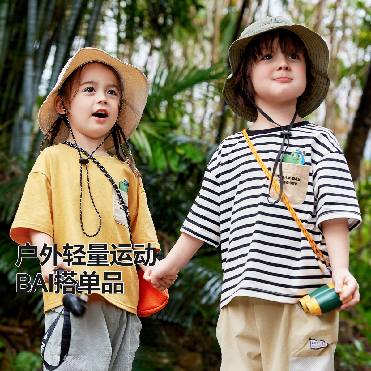 【不易变形】男童短袖夏季儿童t恤运动夏宝宝条纹夏装中大童短T潮