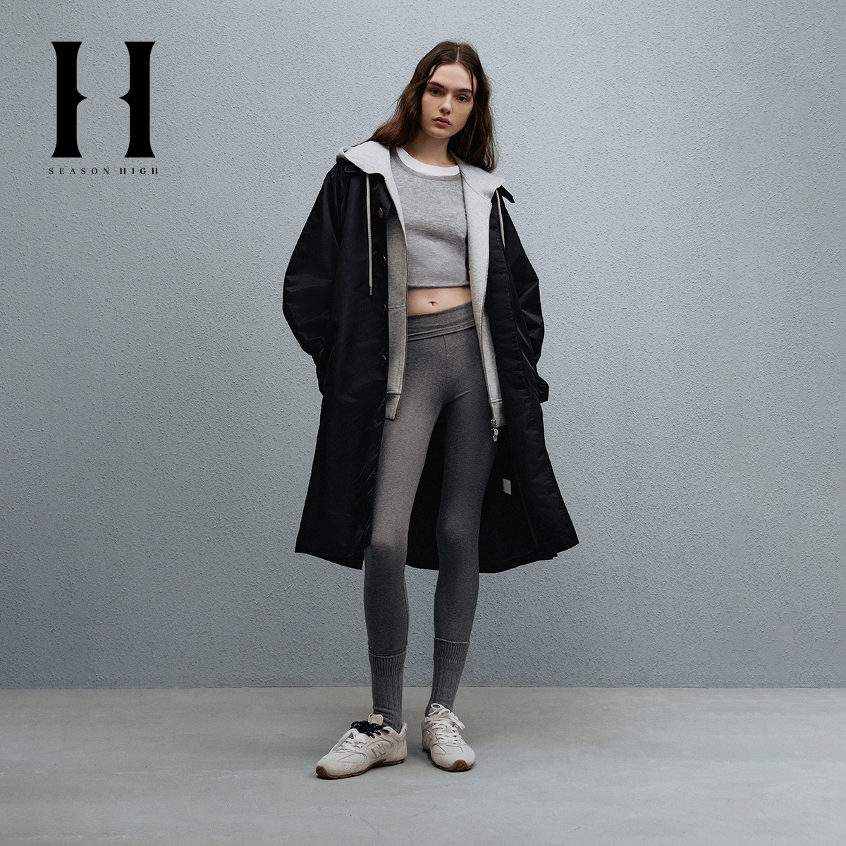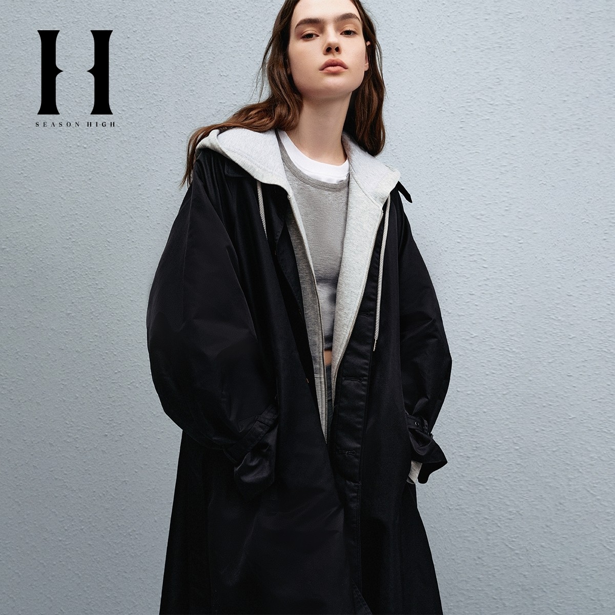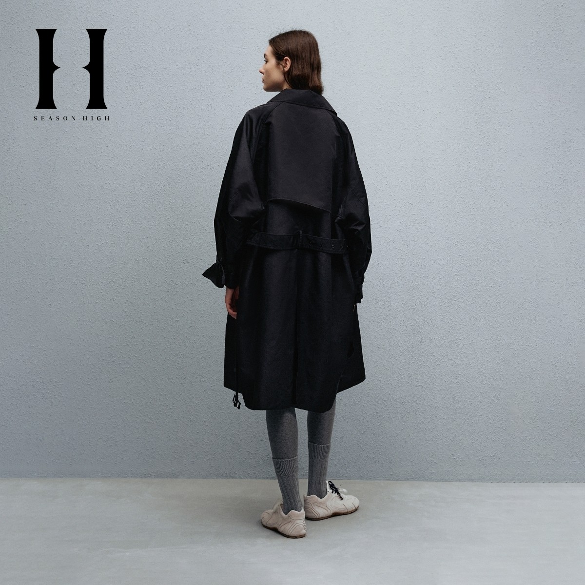 SEASONHIGH秋季女士风衣翻领百搭插肩袖拉链口袋可调节腰带外套女