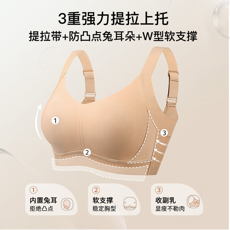 润微提拉内衣女大胸显小无痕提拉防下垂聚拢收副乳胸罩爆款文胸