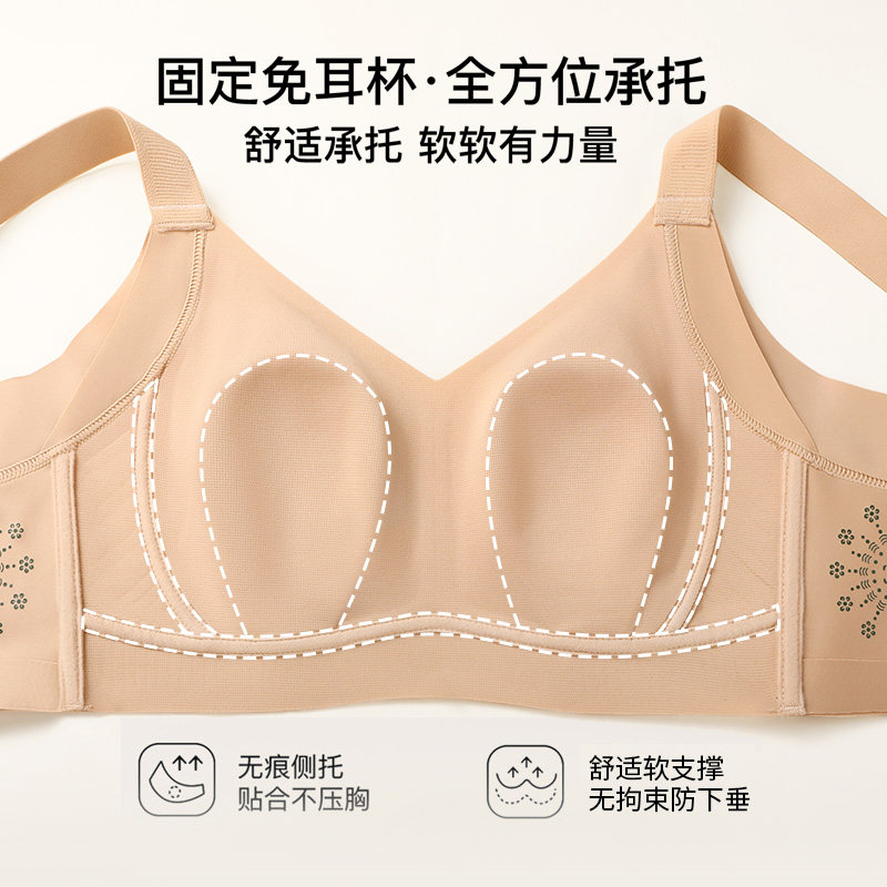 菇娘家兔耳杯内衣女大胸显小胸聚拢收副乳防下垂无痕隐形女款文胸