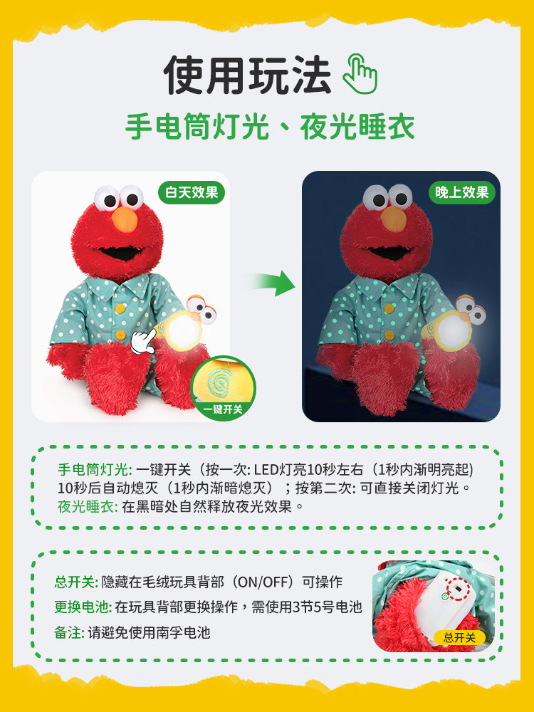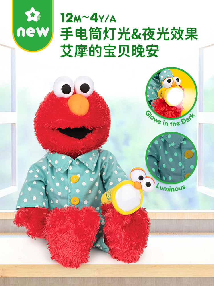 美国GUND芝麻街经典卡通人物艾摩的宝贝晚安声动毛绒玩偶儿童玩具