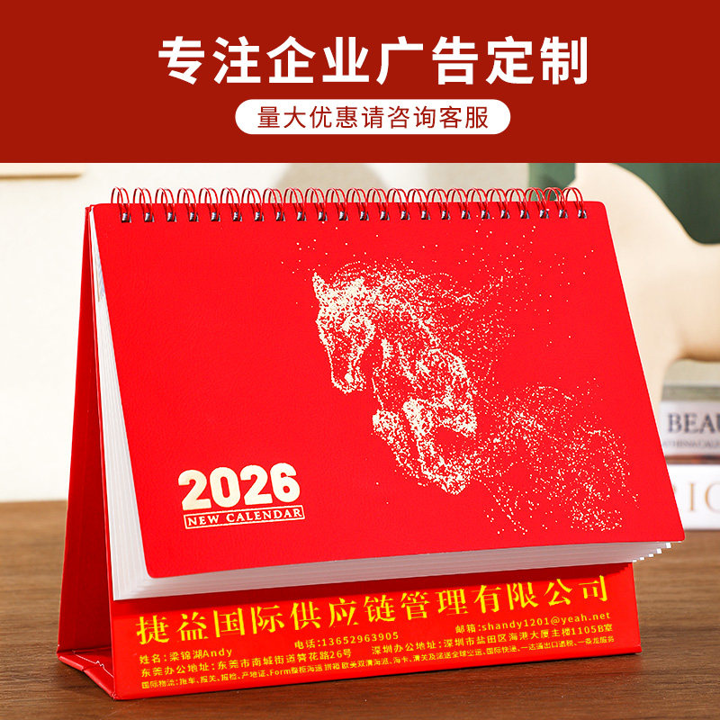 台历2026年新款日历桌面摆件办公室中国风马年创意翻页工位工作打卡计划本礼盒企业广告红色喜庆礼品月历定制