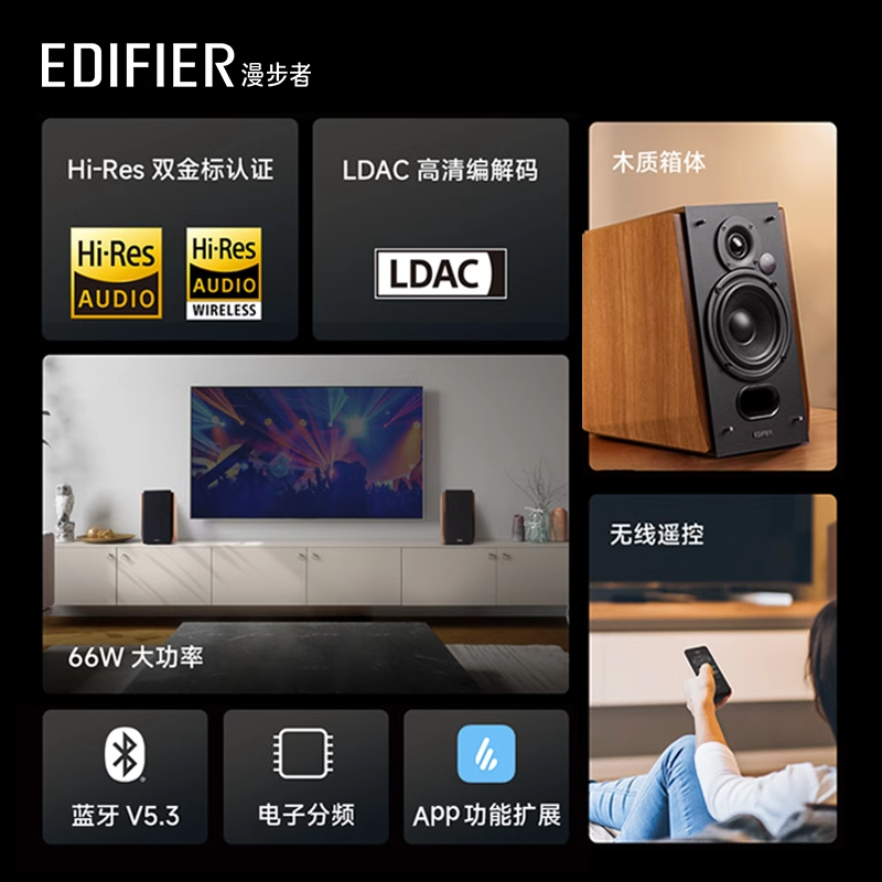 漫步者 R1700BT+升级电脑音响电视台式家用低音炮多媒体蓝牙音箱