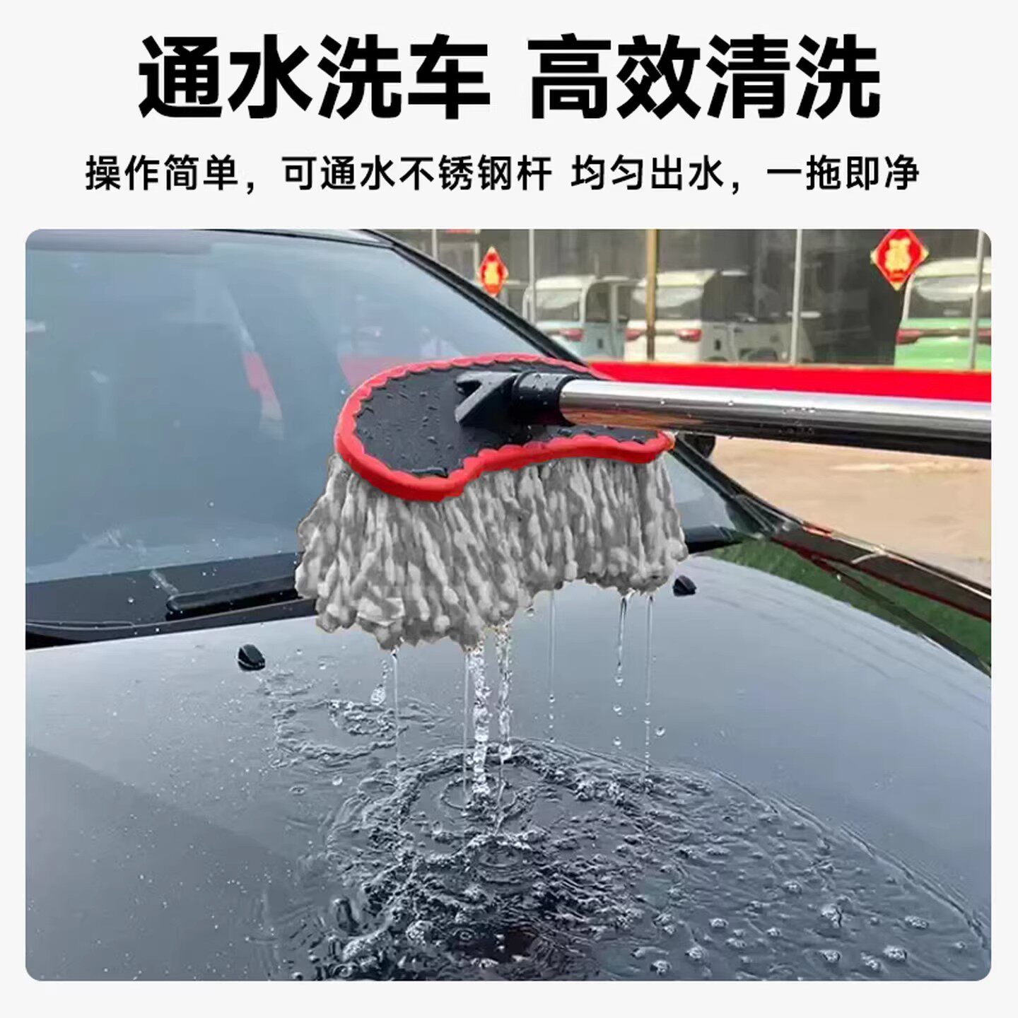 通水洗车拖把不伤车专用可冲水洗车刷洗车专用拖把软毛带水管工具