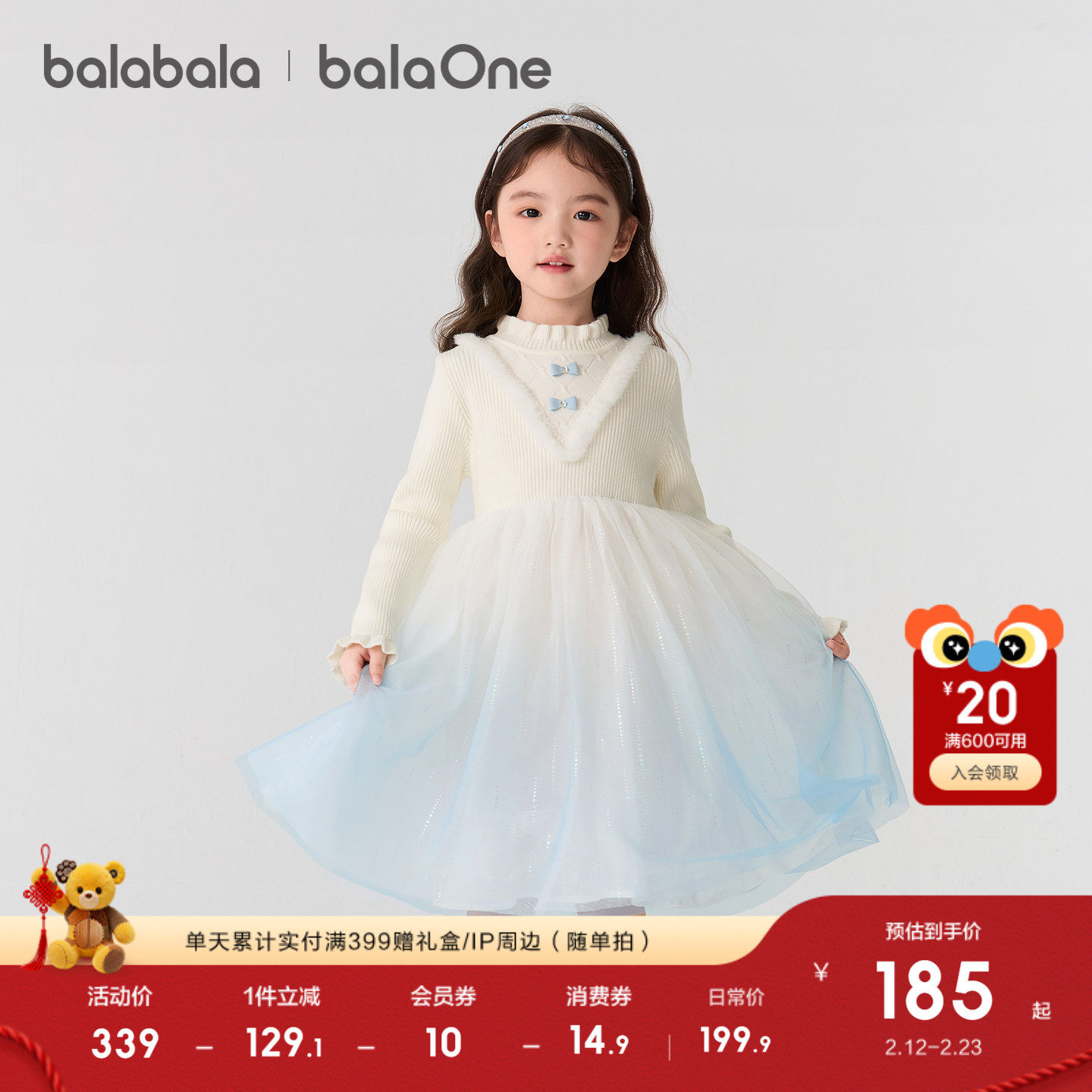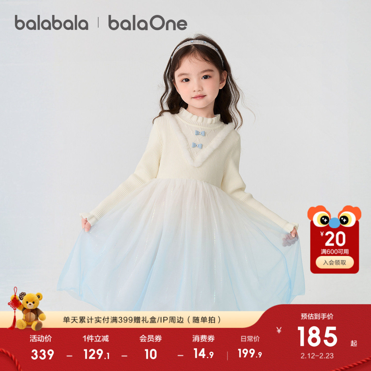 巴拉巴拉balaOne童装女公主裙2025秋冬新款儿童连衣裙针织网纱裙