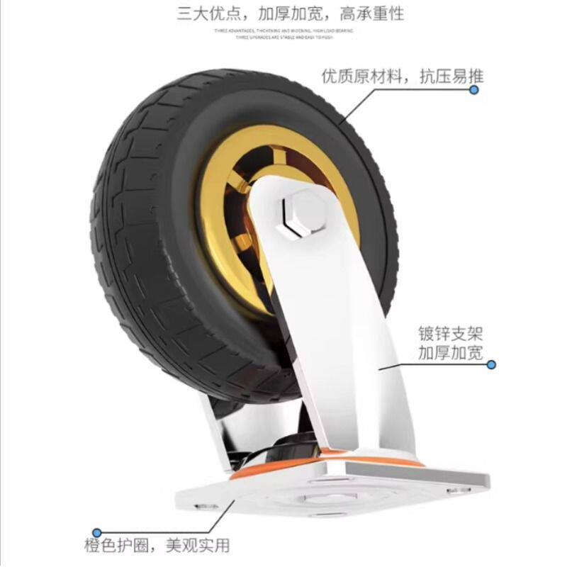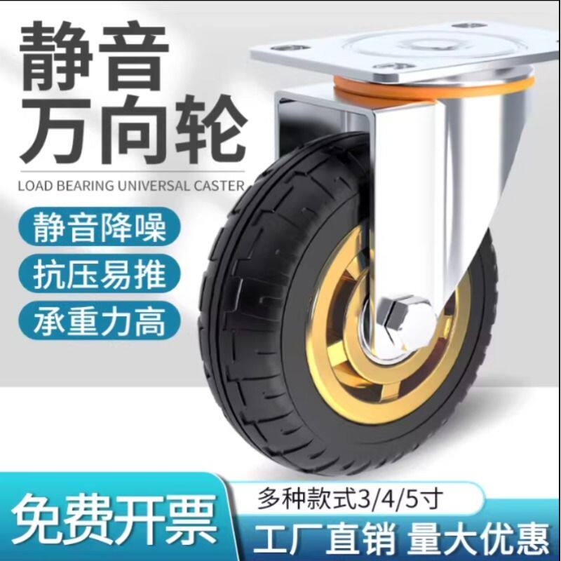 3寸4寸5寸万向轮304橡胶轮脚轮静音耐磨手推平板车轮子滚轮