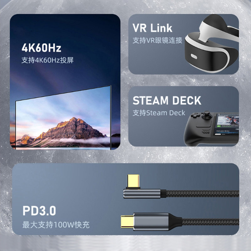 USB3.2全功能TYPE-C数据线10Gbps适用华为VR元宇宙MetaQuest3/2头显VR串流Link连接AR眼镜电脑PD快充4K投屏线