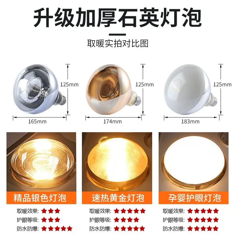 浴霸取暖灯泡275w硬质防爆烤灯浴室卫生间光源灯暖石英耐高温螺口
