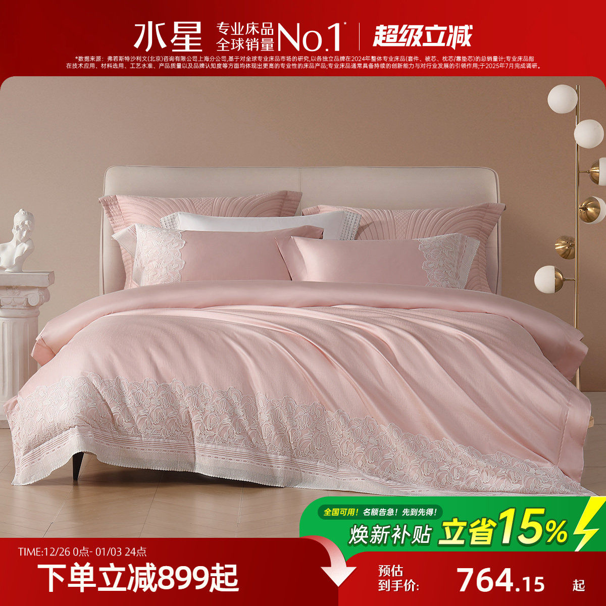洁丽雅四件套纯棉全棉2025新款被套床单床品床笠款宿舍床上三件套