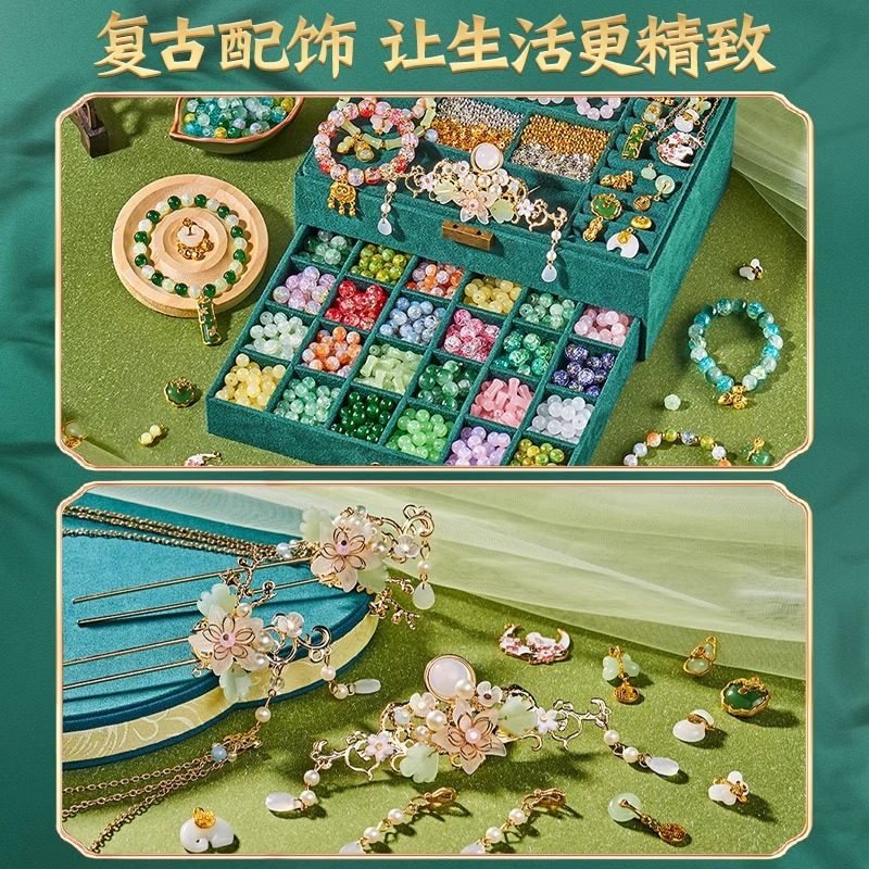 新年儿童手链串珠手工diy材料古首饰礼盒小女孩6一12生日礼物玩具