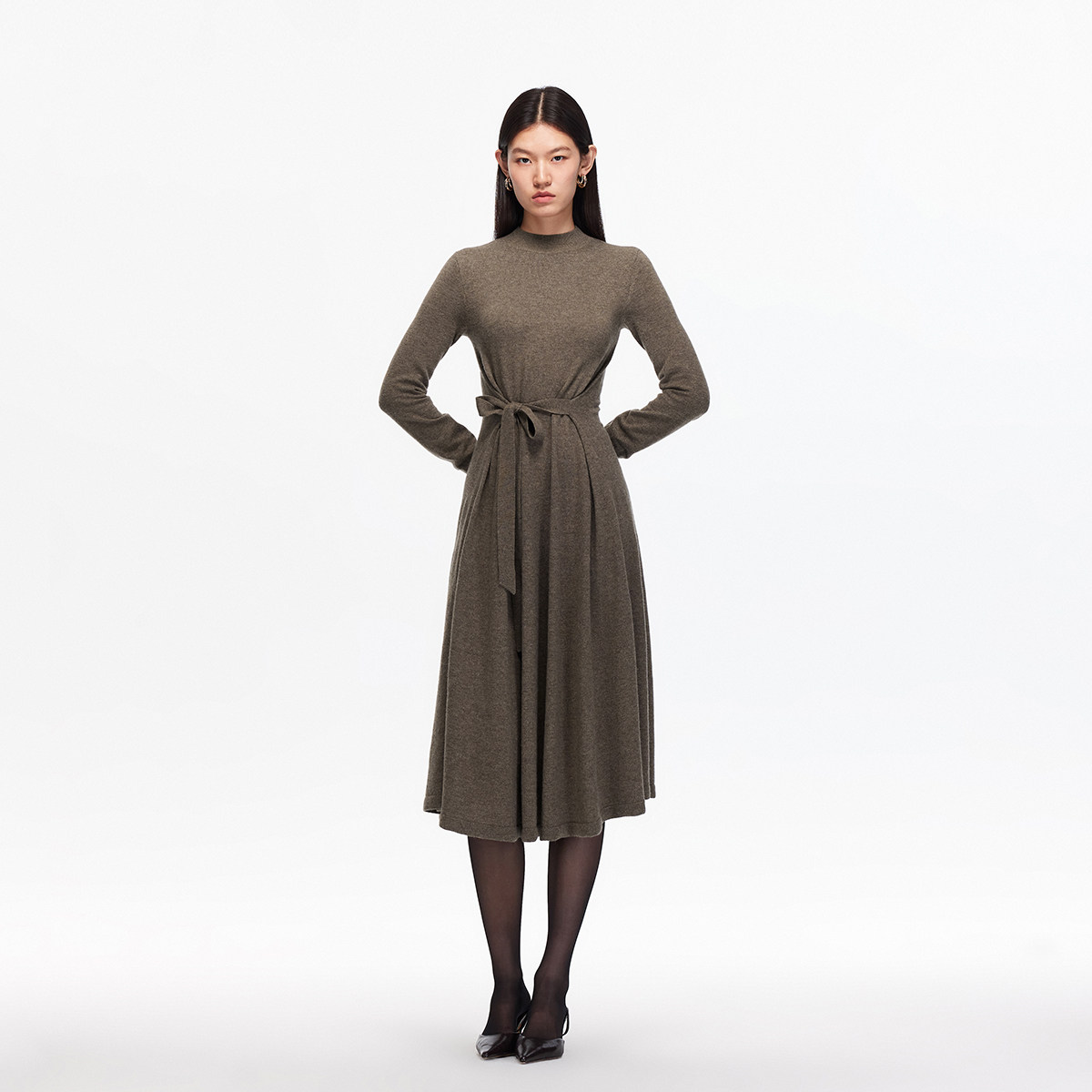 Vero Moda奥莱连衣裙女2025秋冬新款含绵羊毛立领系带针织裙裙子
