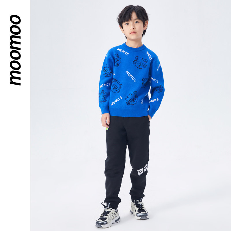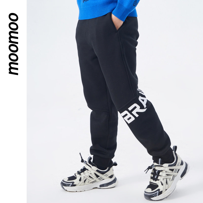 moomoo童装男童拼接针织裤显瘦加绒长裤保暖秋冬显瘦小脚裤下装男