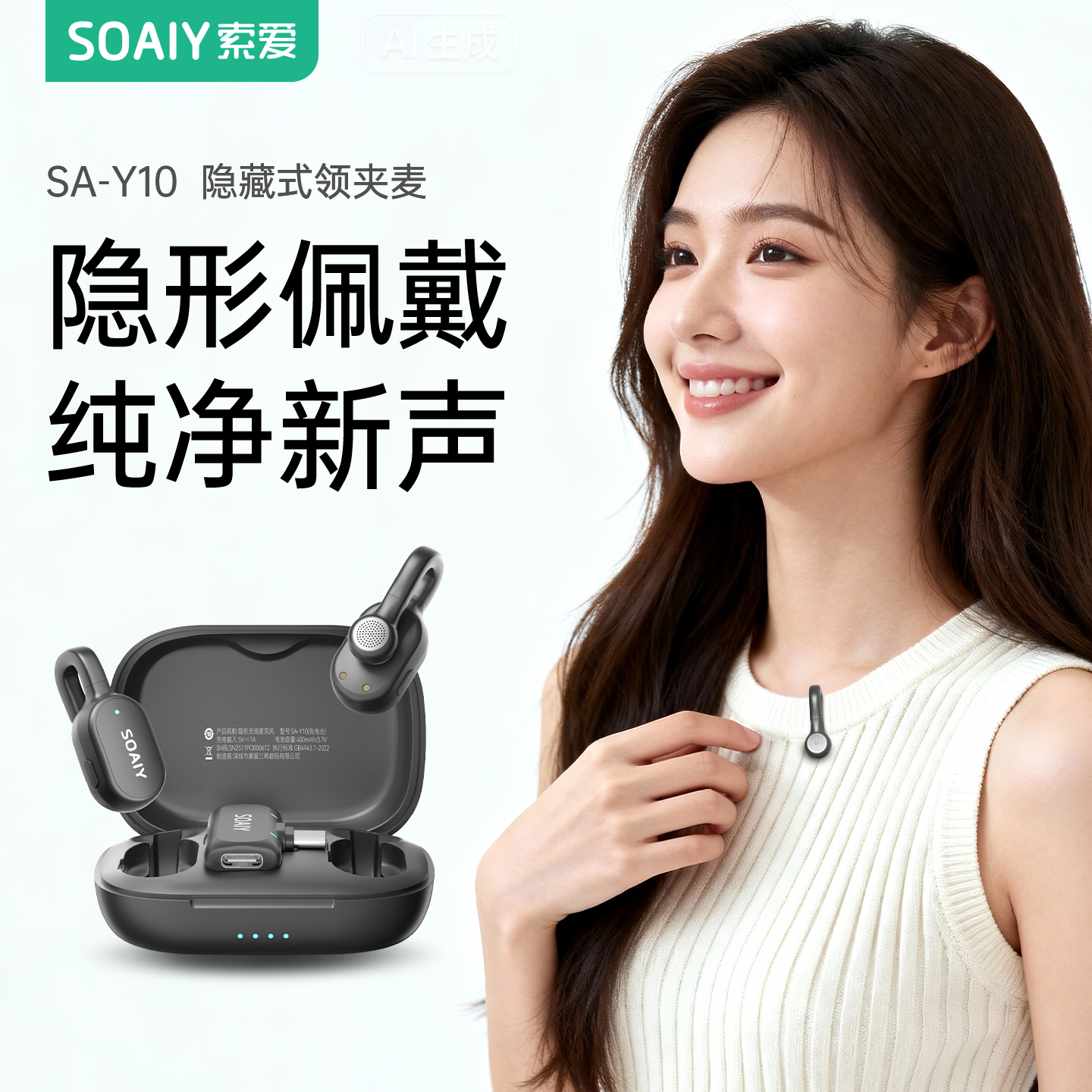 索爱Y10无线直播麦克风隐藏形收音麦夹领式手机录音拍视频专用