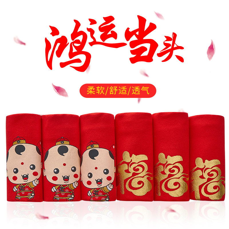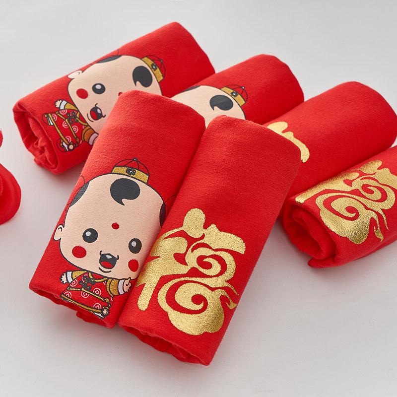 男童红色内裤大红中大童学生本命年纯棉全棉短裤儿童平角裤新年红