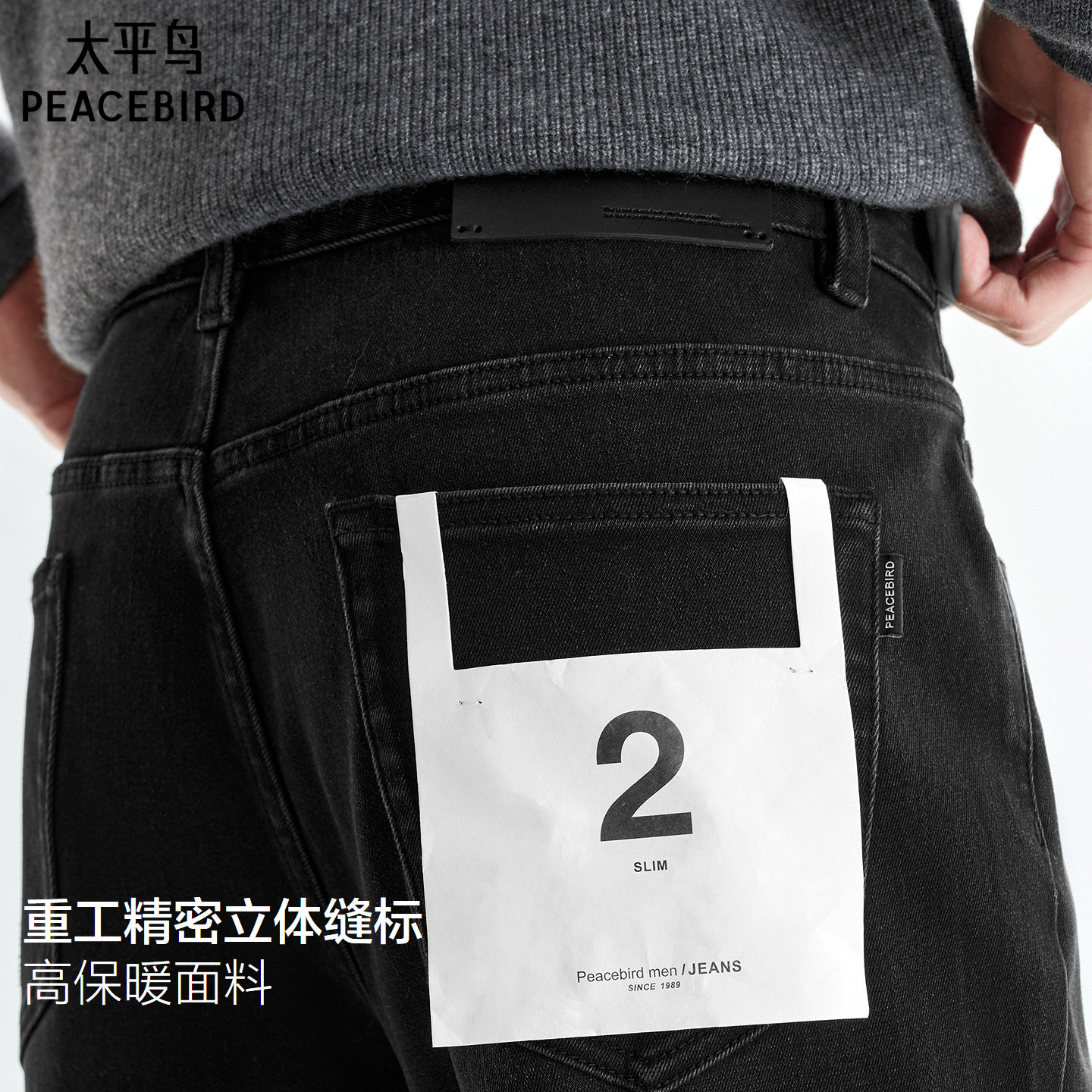 【温芯棉2.0】太平鸟男装牛仔裤25冬季新款保暖复古黑色休闲长裤