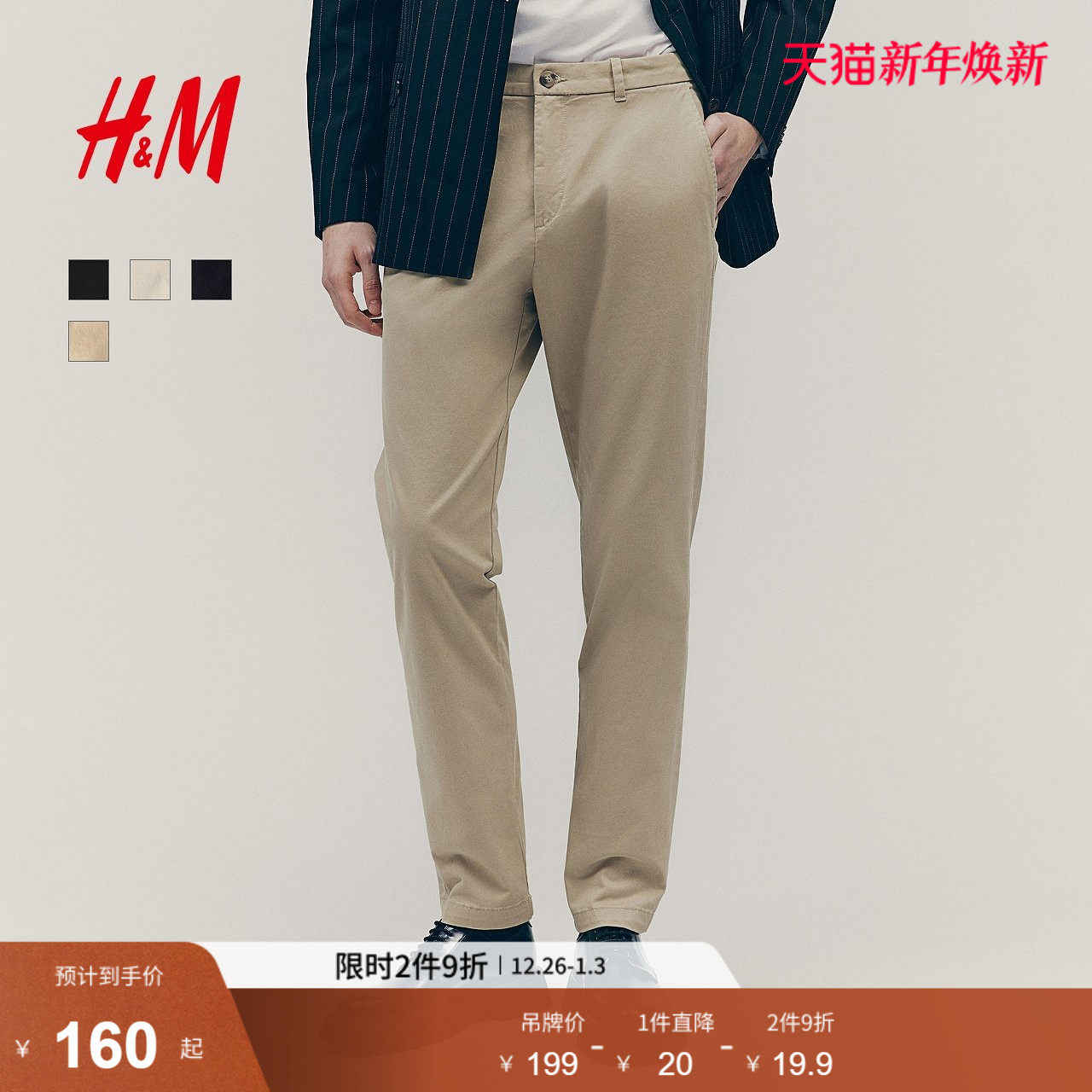 HM男装休闲裤冬季合身版弹力棉质通勤时尚简约西裤长裤1248348