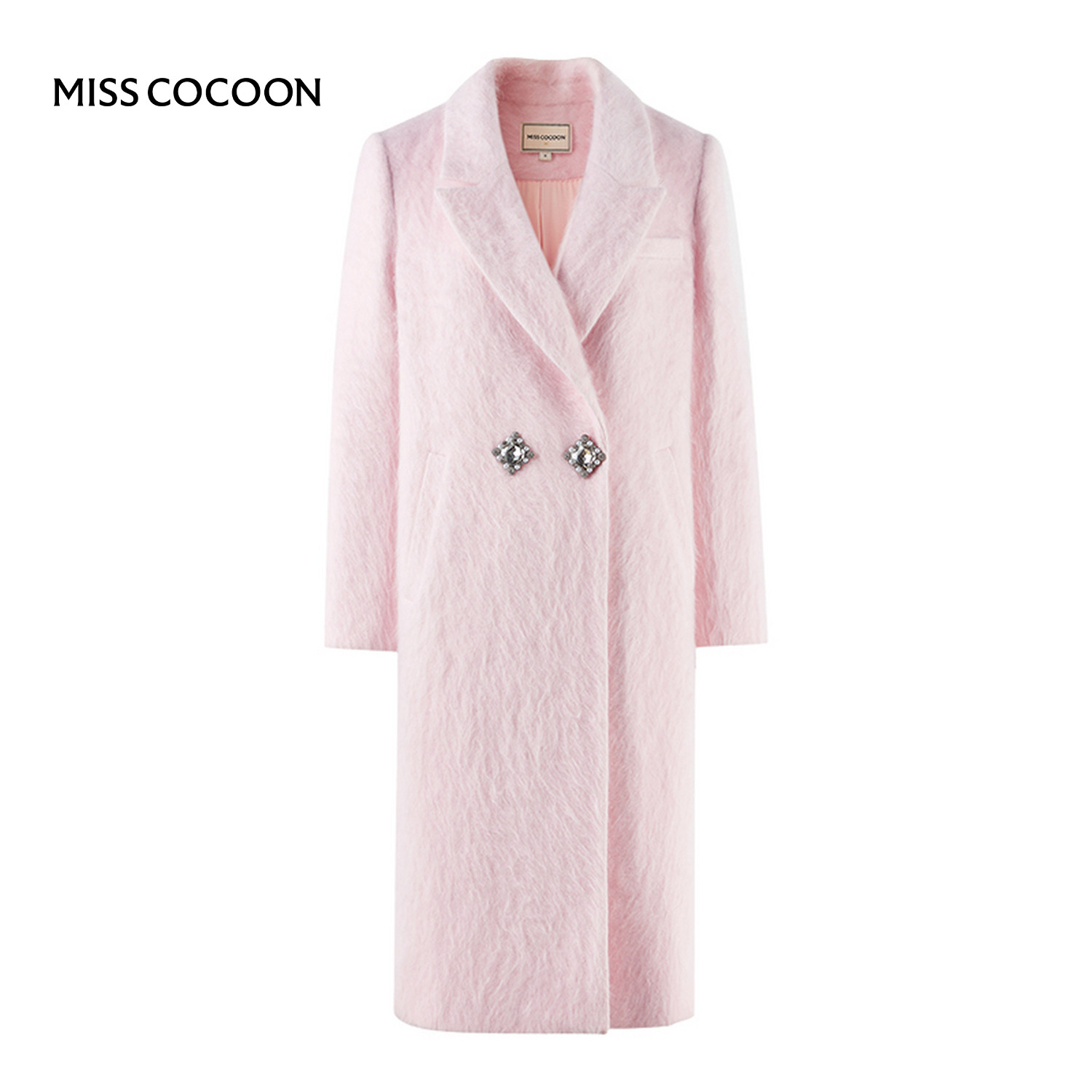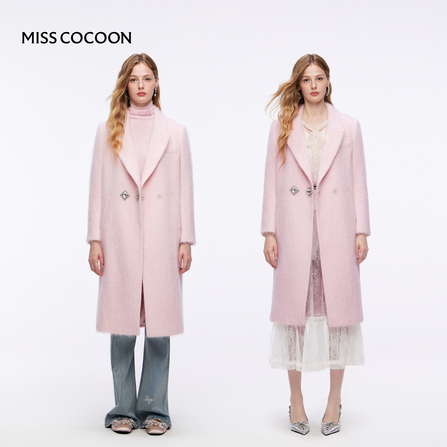 MISSCOCOON可可尼毛毛大衣女2025冬新款千金风翻领山羊绒毛呢外套