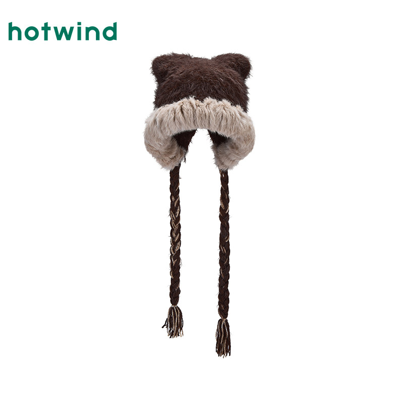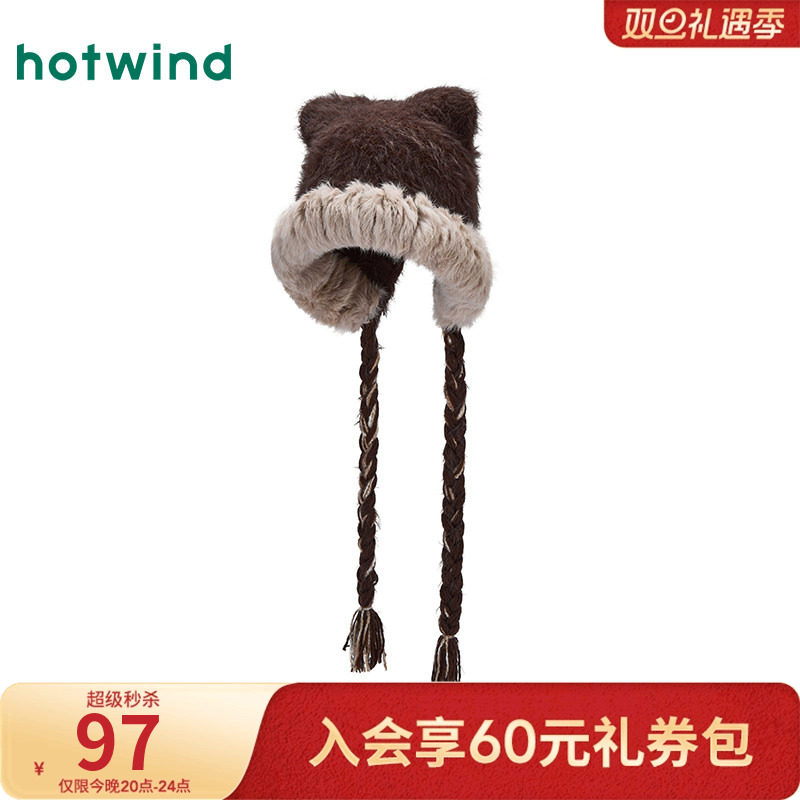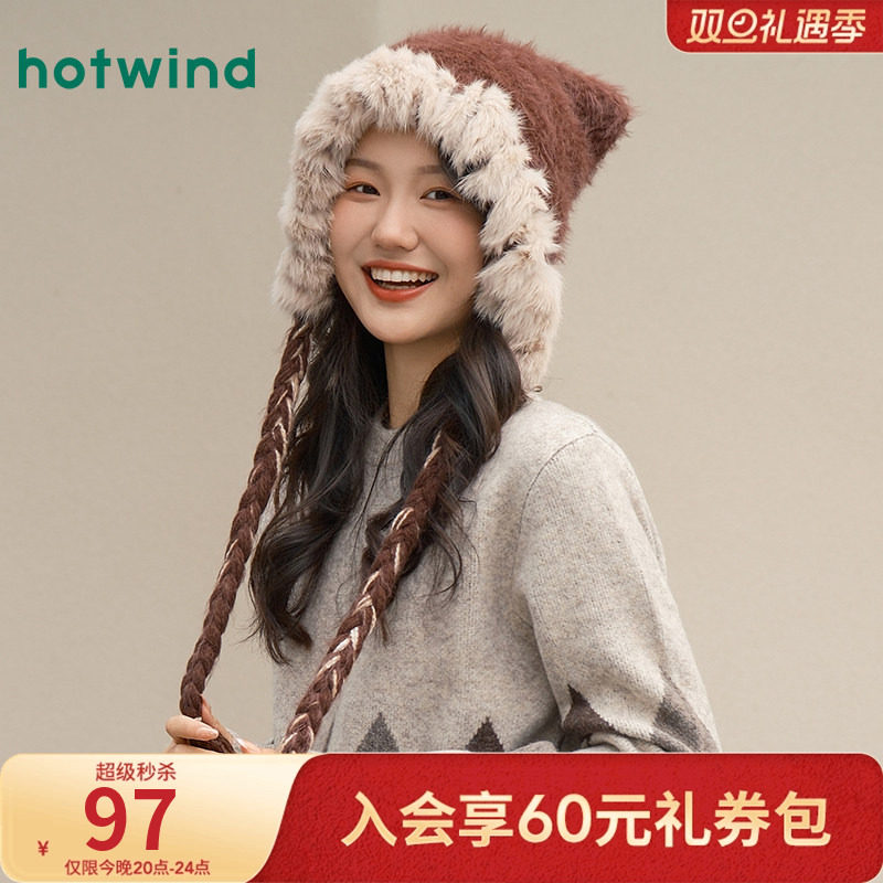 热风女士帽子2025年冬季新款毛绒拼接护耳毛线帽保暖显脸小帽子