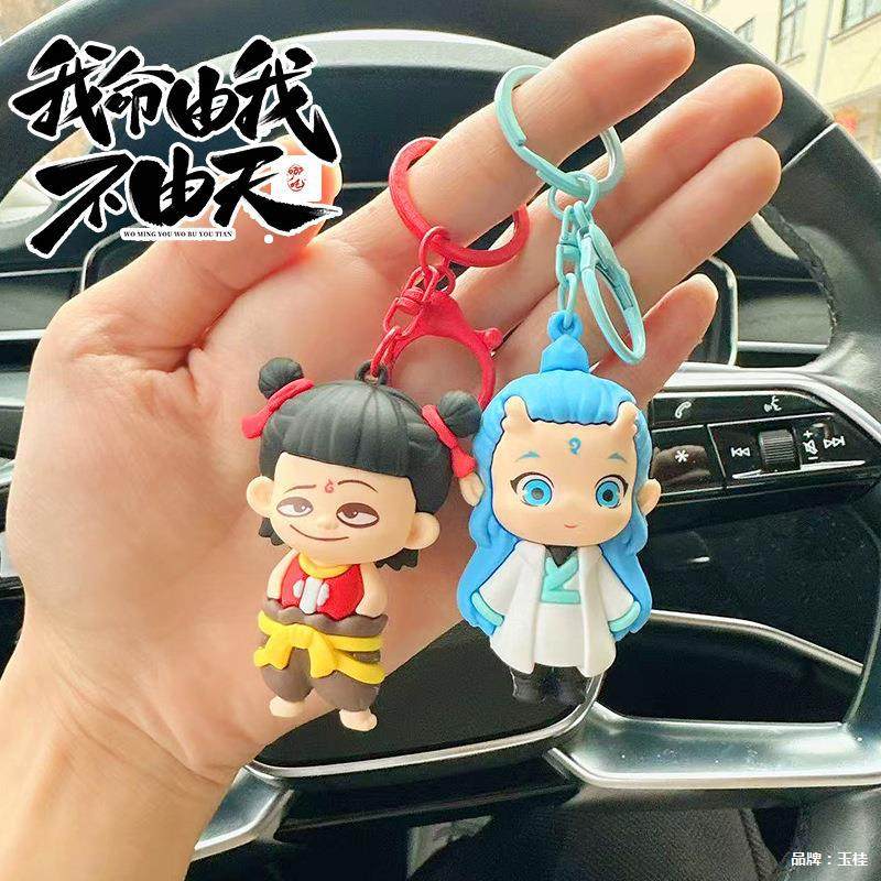 新款哪吒钥匙扣周边哪吒敖丙硅胶立体学生书包挂件生日礼物奖品