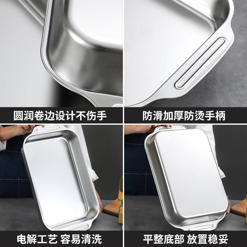 加厚不锈钢烤鱼盘长方形家用烤鱼托盘加深烧烤盘烤鱼炉不粘盘烤盘