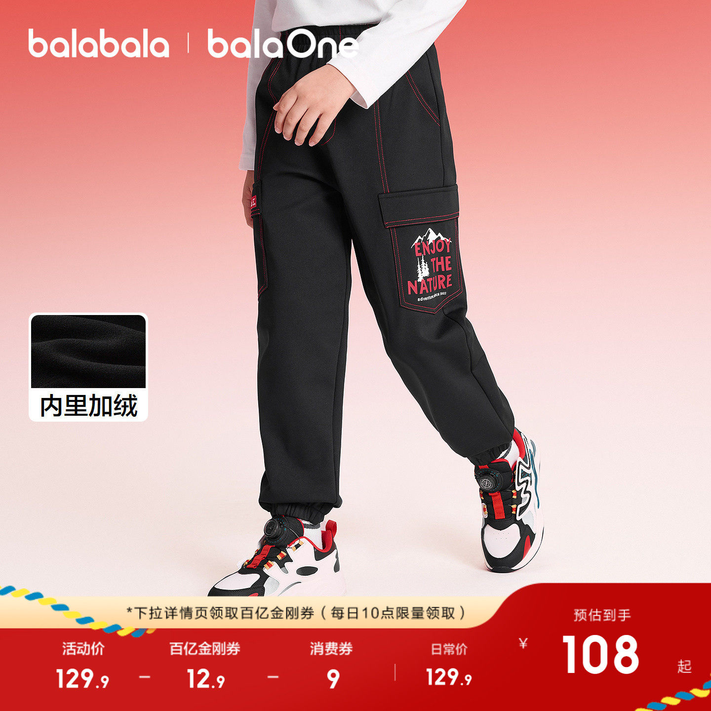 巴拉巴拉童装儿童加绒裤子男女童2026新款春秋装宽松拜年服束脚裤