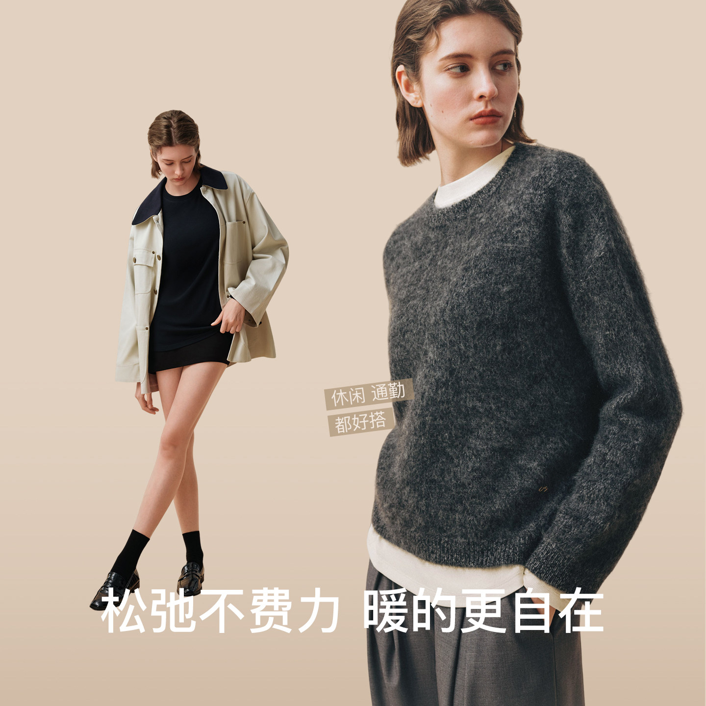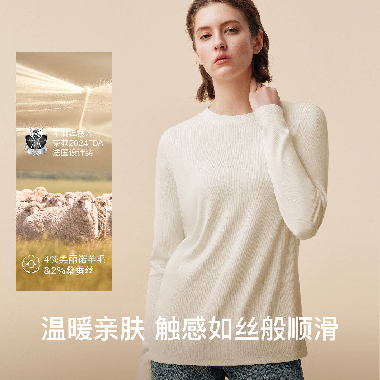 ubras含美利奴羊毛蚕丝圆领春秋款肌底上衣黑白色打底衫宽松T恤