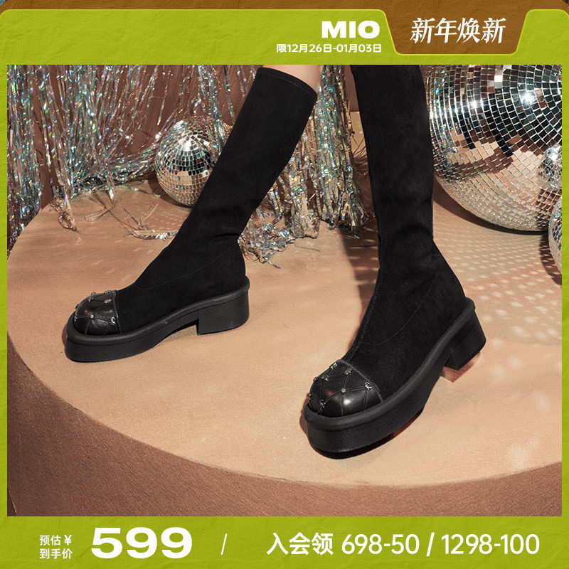 MIO米奥冬季靴子圆头中跟新款长筒靴酷飒显瘦舒适弹力靴袜靴女