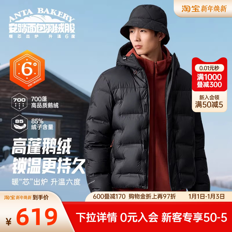 【王一博同款】安踏面包羽绒丨速暖防泼水短款鸭绒羽绒服外套