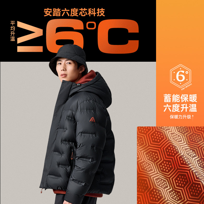 安踏火山岩六度芯羽绒服无缝羽绒服男士2025冬季新款鹅绒保暖外套