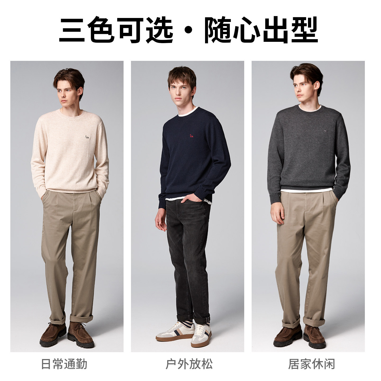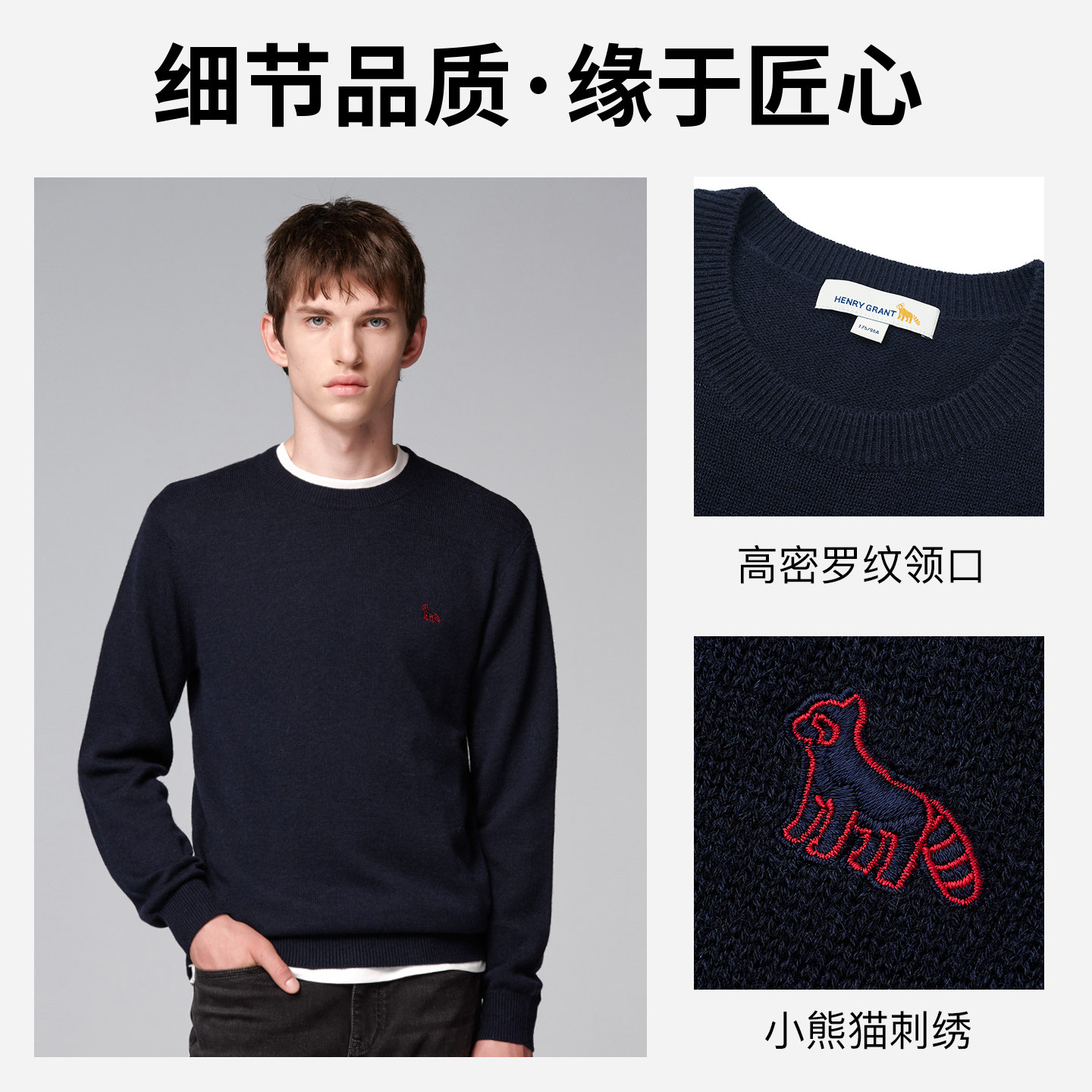 亨利格兰圆领羊毛衫男士2025秋冬英伦休闲厚款保暖百搭舒适针织衫