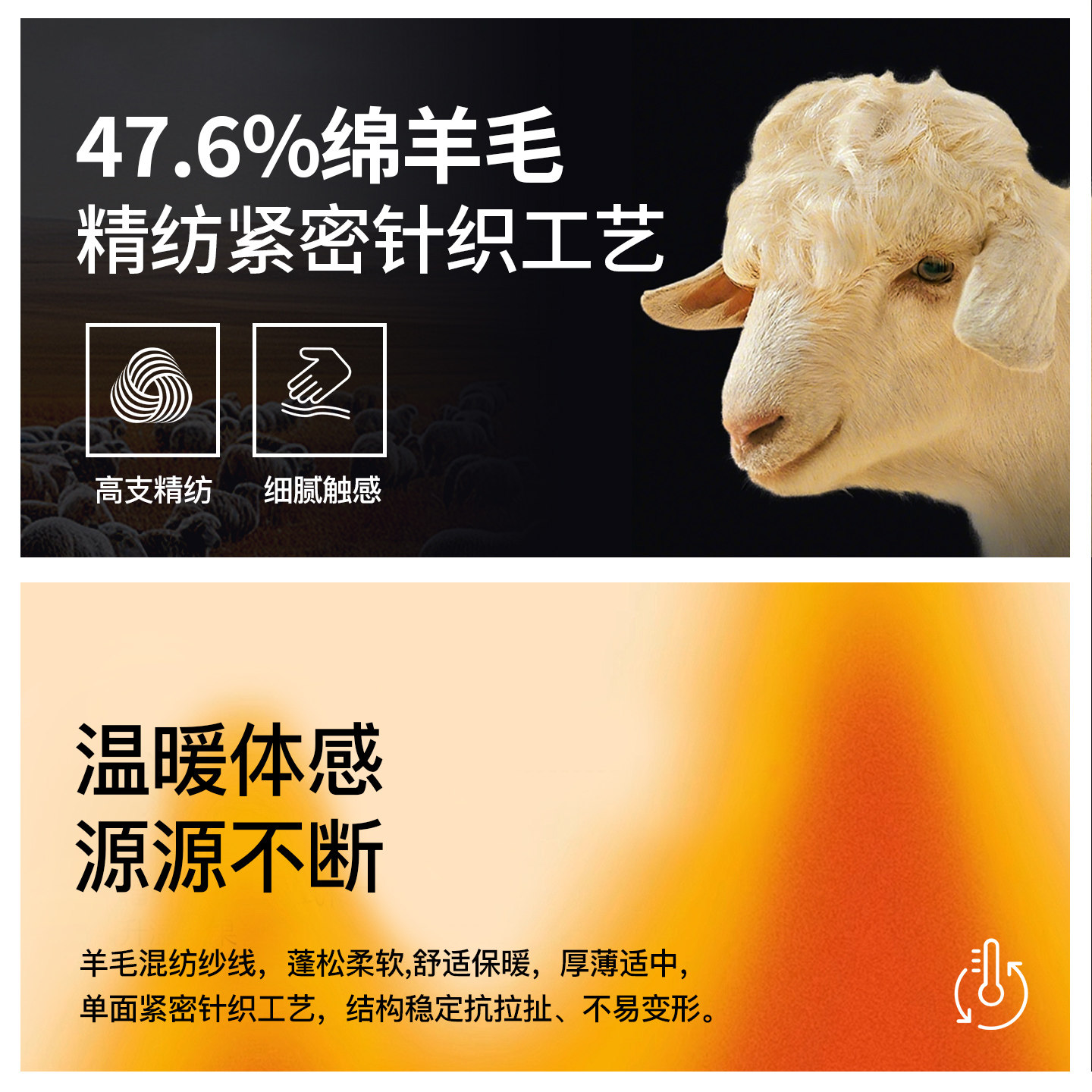 森马毛衫男冬季含羊绒针织衫发热抑菌2025新款基础圆领黑色打底衫