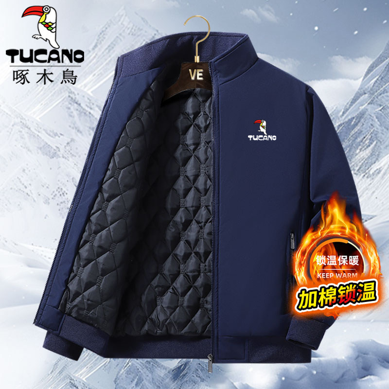 啄木鸟冬季夹克男外套中老年男士加棉爸爸装加厚保暖棉服加绒防风