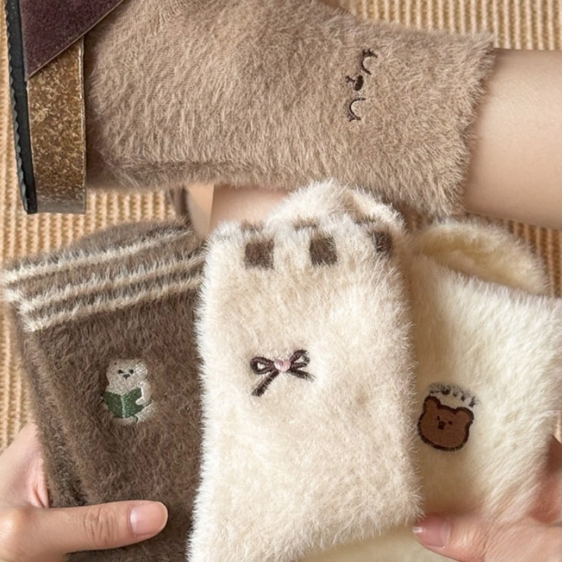 袜子女中筒袜春秋季款棉袜ins潮植绒韩系卡通可爱猫咪长筒堆堆袜
