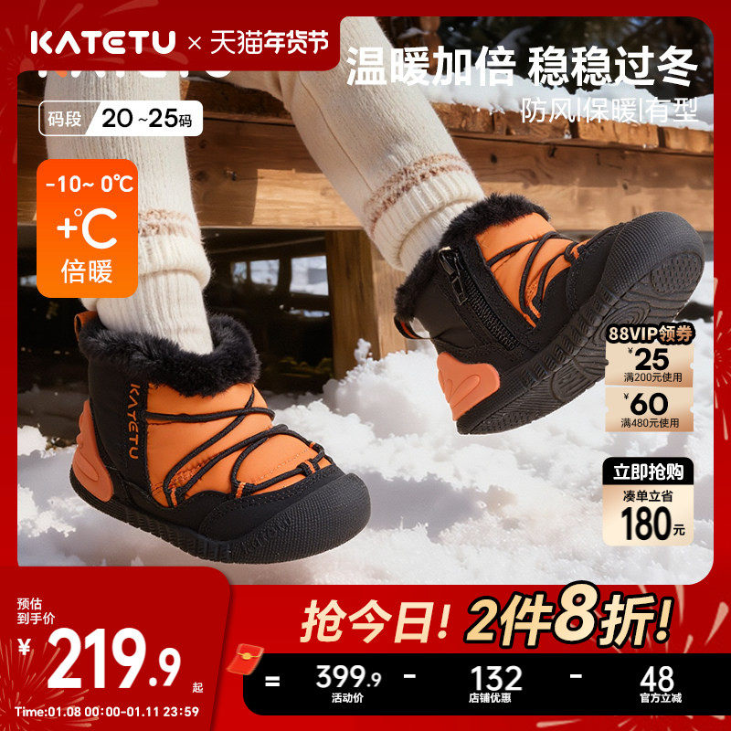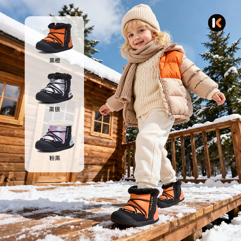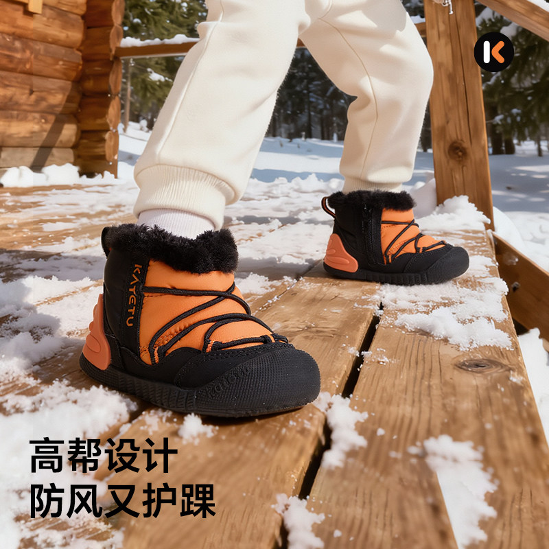 卡特兔婴儿学步鞋2025冬季新品高帮加绒棉鞋宝宝毛毛靴雪地靴棉靴