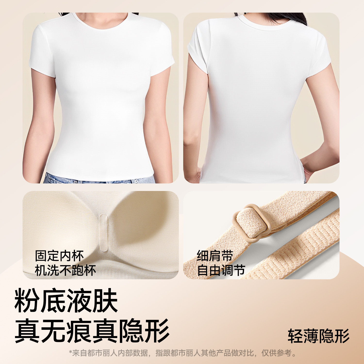 都市丽人粉底液内衣女细肩带无痕聚拢收副乳显瘦绸面背心美背文胸