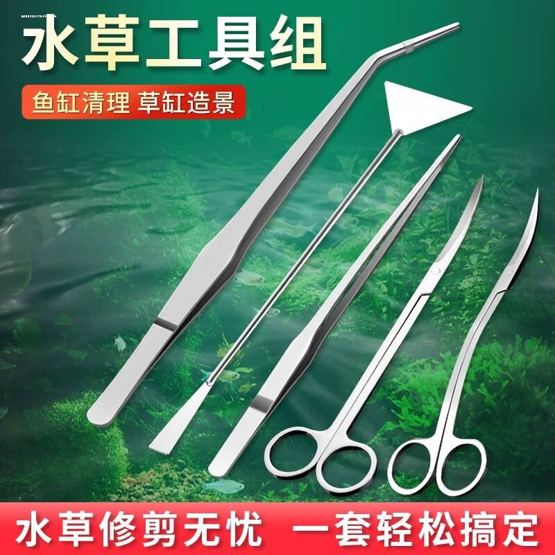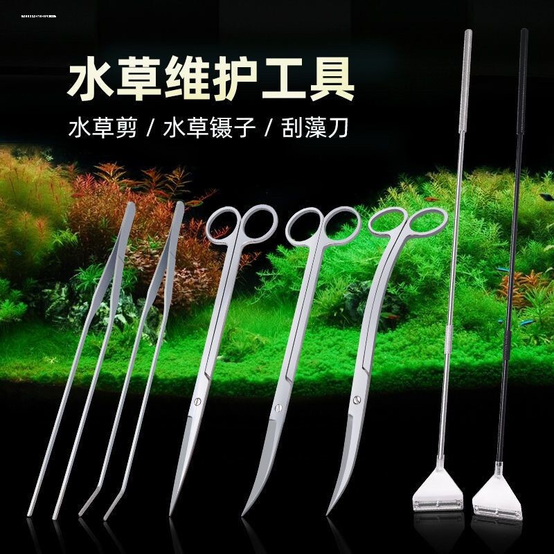 不锈钢水草镊子剪刀工具架直头弯头平沙铲刮藻刀打肥器修剪草缸