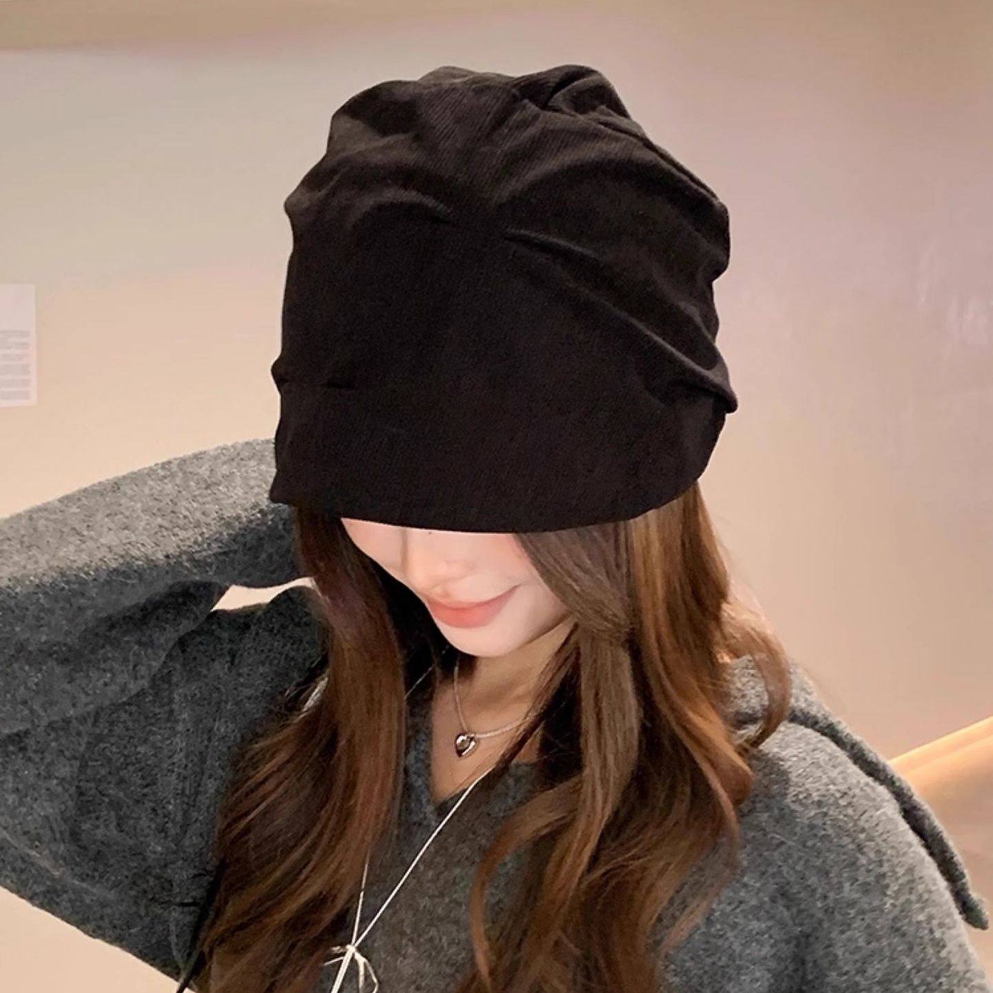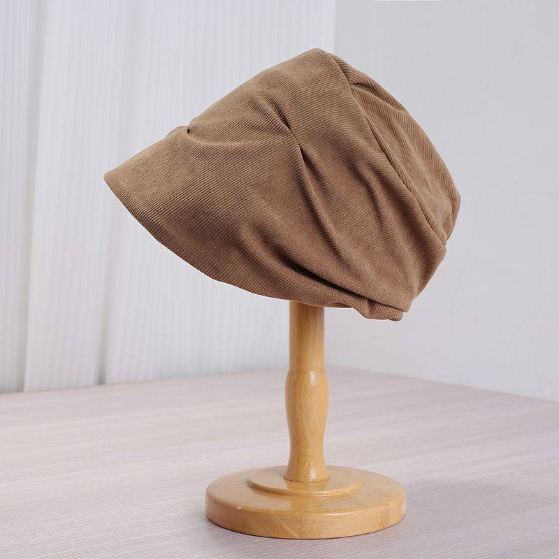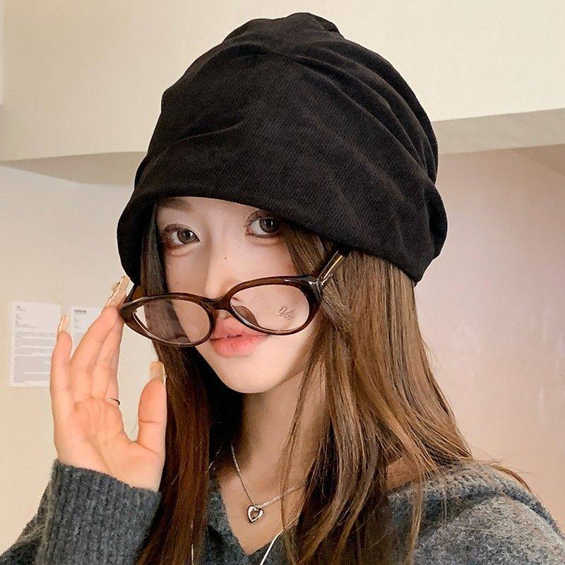 小众褶皱冷帽女款秋冬灯芯绒贝雷帽大头围堆堆帽保暖显脸小包头帽