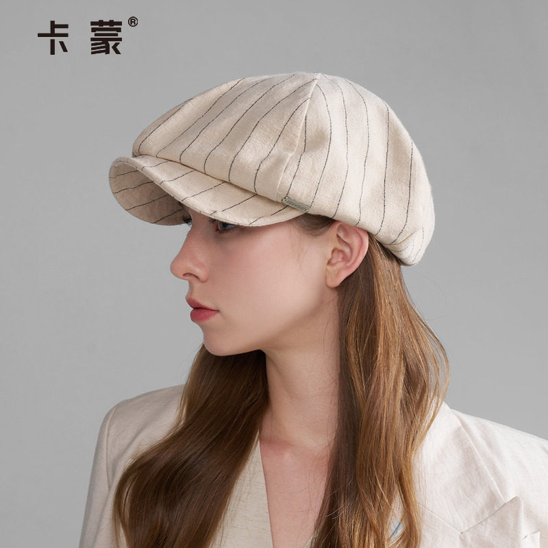 卡蒙亚麻肌理鸭舌帽轻薄前进帽女时尚复古贝雷帽高级感百搭画家帽