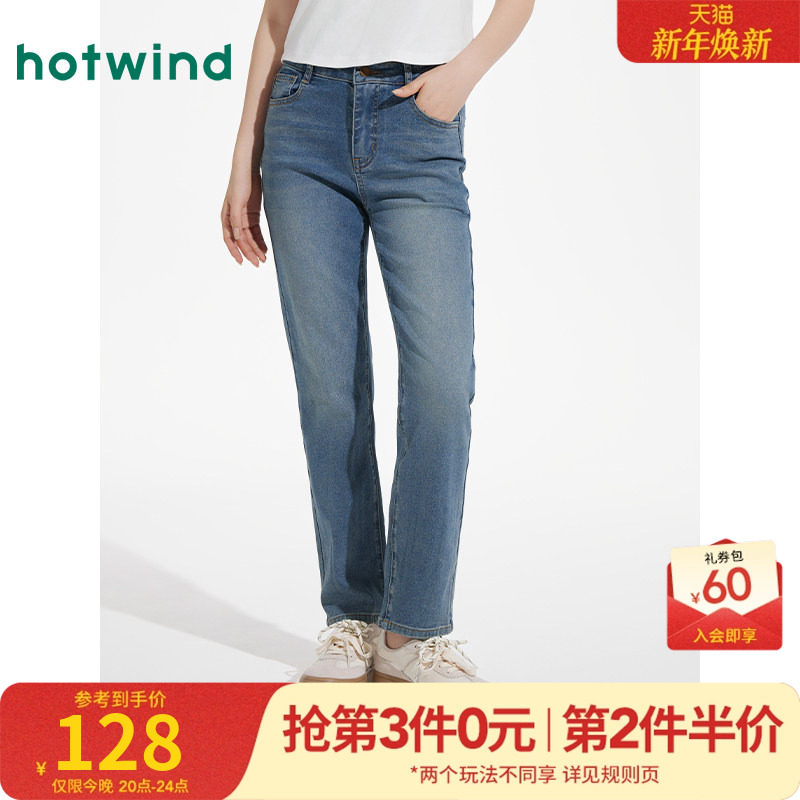 热风女士牛仔裤2025年春季新款基础小脚牛仔裤修身显瘦窄脚铅笔裤