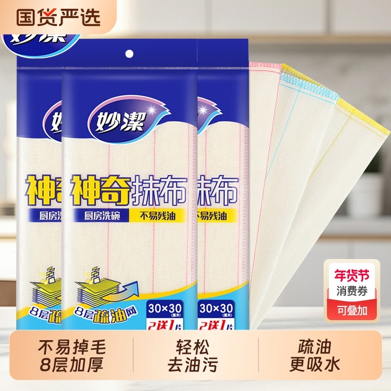 妙洁洗碗布抹布不沾油厨房专用家用纯棉洗碗巾加厚吸水百洁布木浆
