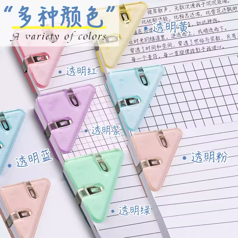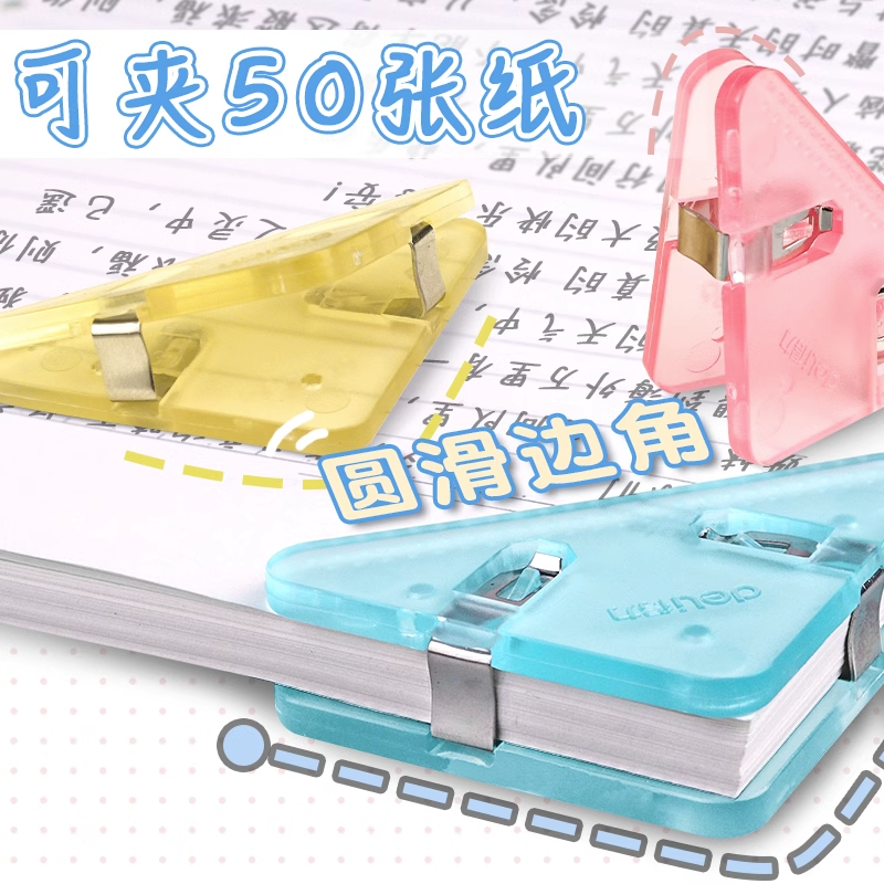 得力三角夹边角夹试卷夹三角文件夹小学生收纳整理资料夹子文具卷子夹书夹办公用品体检票据发票长尾夹