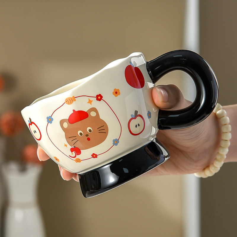 可爱喵咪马克杯家用喝水杯子大耳朵陶瓷情侣杯生日礼物早餐咖啡杯