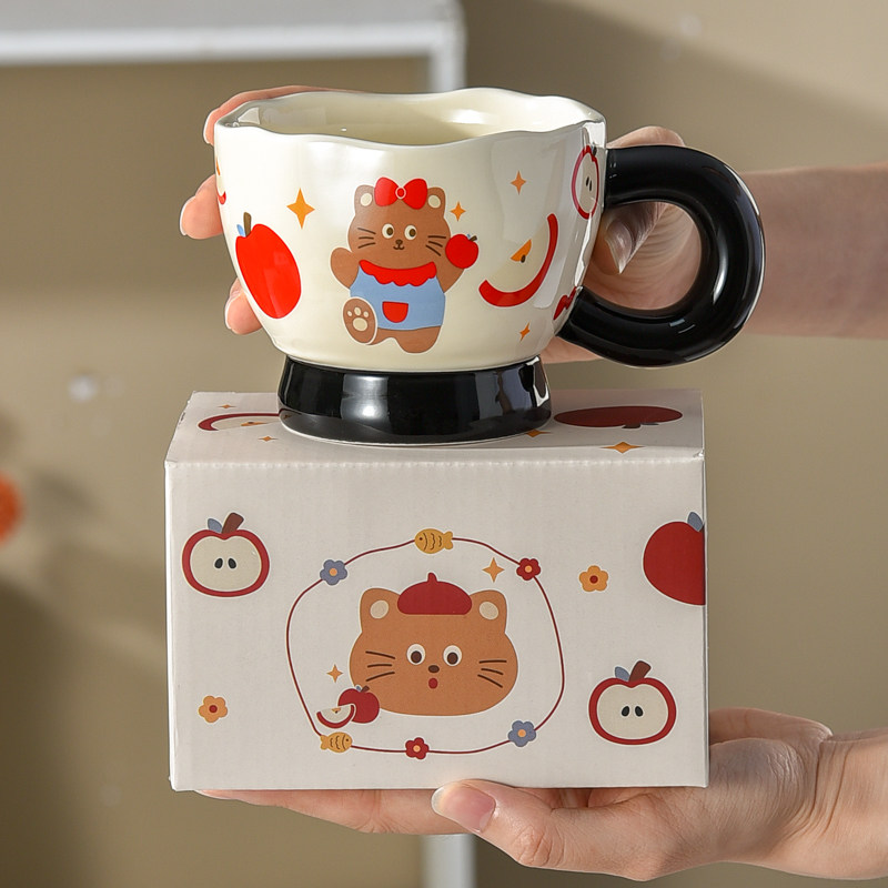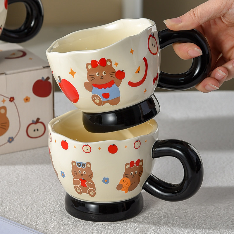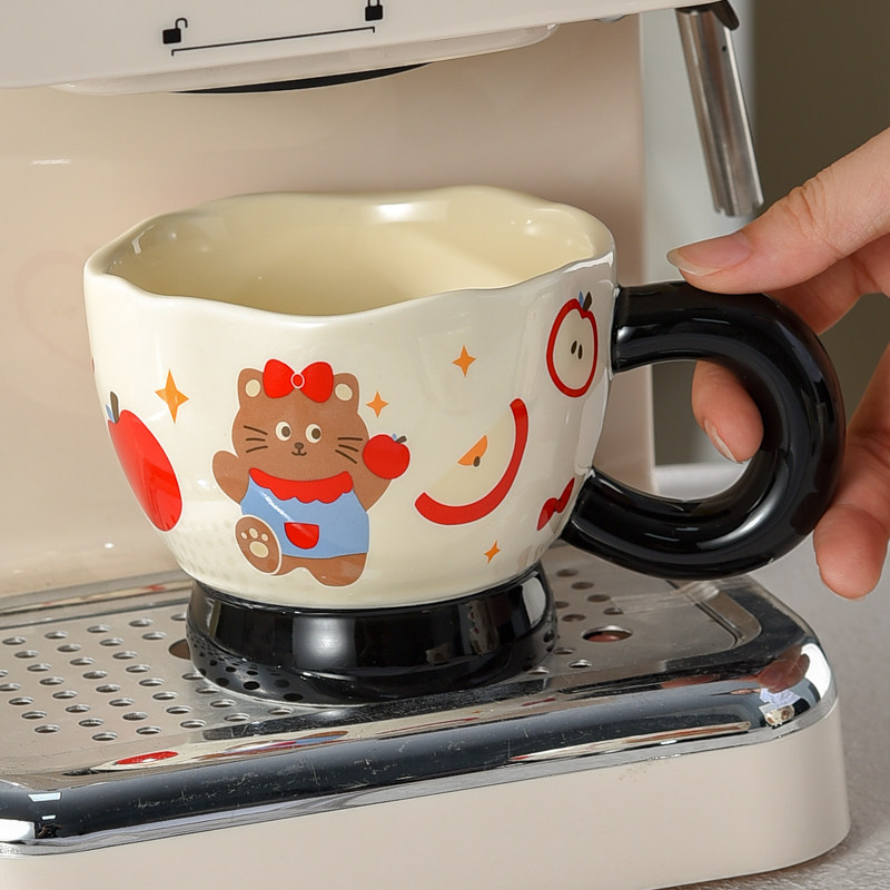 原创小众红苹果咖啡杯简约手绘陶瓷杯复古翻口马克杯水杯情侣礼物