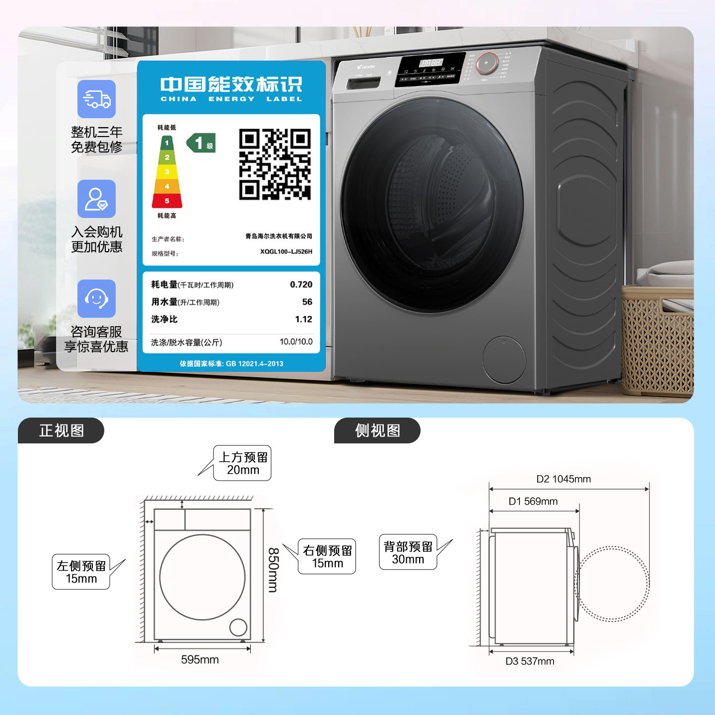 [换新补贴]海尔出品统帅10kg大容量全自动除菌螨超薄滚筒洗衣机