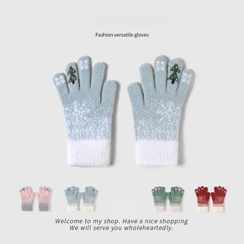 新年圣诞毛线手套冬季女防寒加厚可爱学生露指骑行保暖防风可触屏