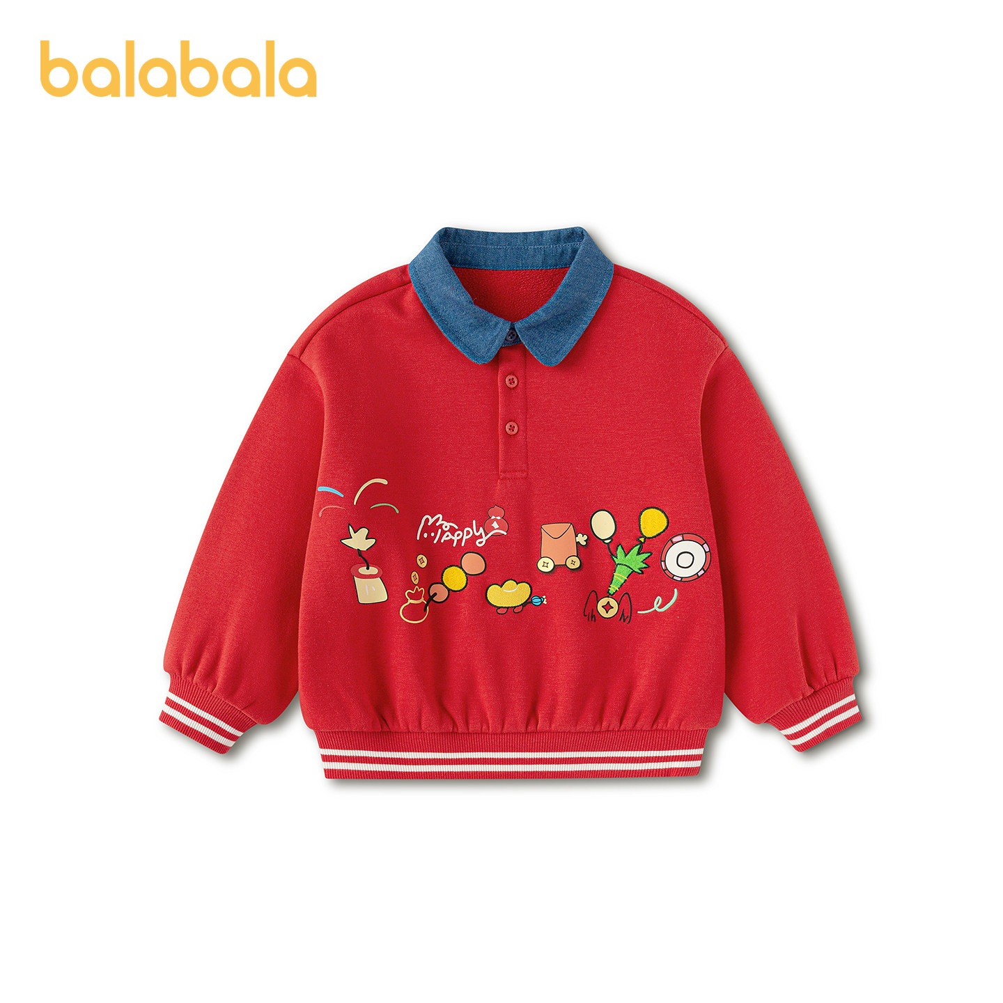 【商场同款】巴拉巴拉童装儿童卫衣男童2026新款春装撞红色拜年服