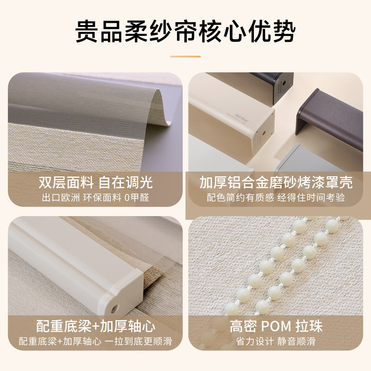贵品棉麻柔纱帘卷帘免打孔客厅书房办公室遮光遮阳隔热百叶升降帘