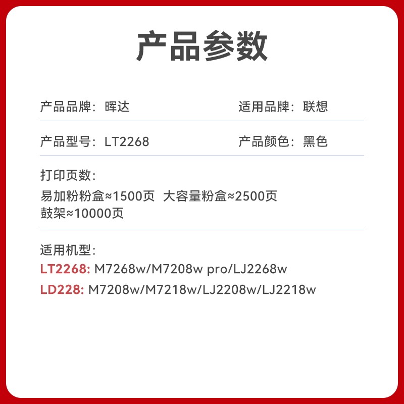 晖达适用联想小新LD228联想m7268w硒鼓LJ2268w粉盒LT2268 m7208w Pro一体机M7218w打印机墨盒LJ2208w LJ2218