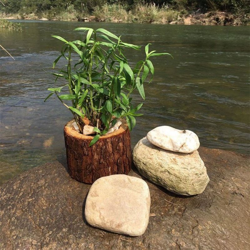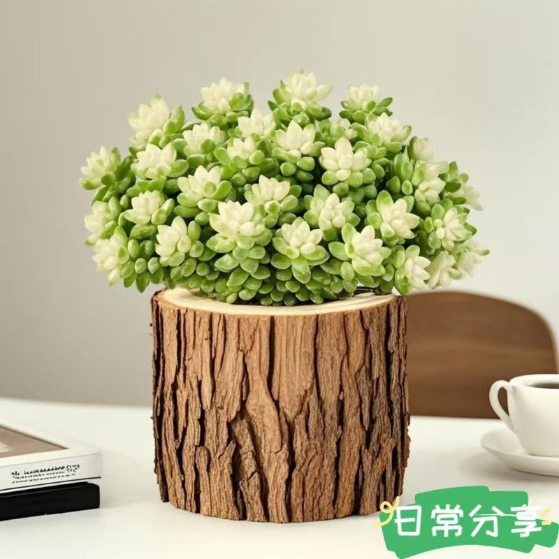铁皮石斛多肉植物杉木木质原木花盆创意原木树桩木质花盆木头花盆