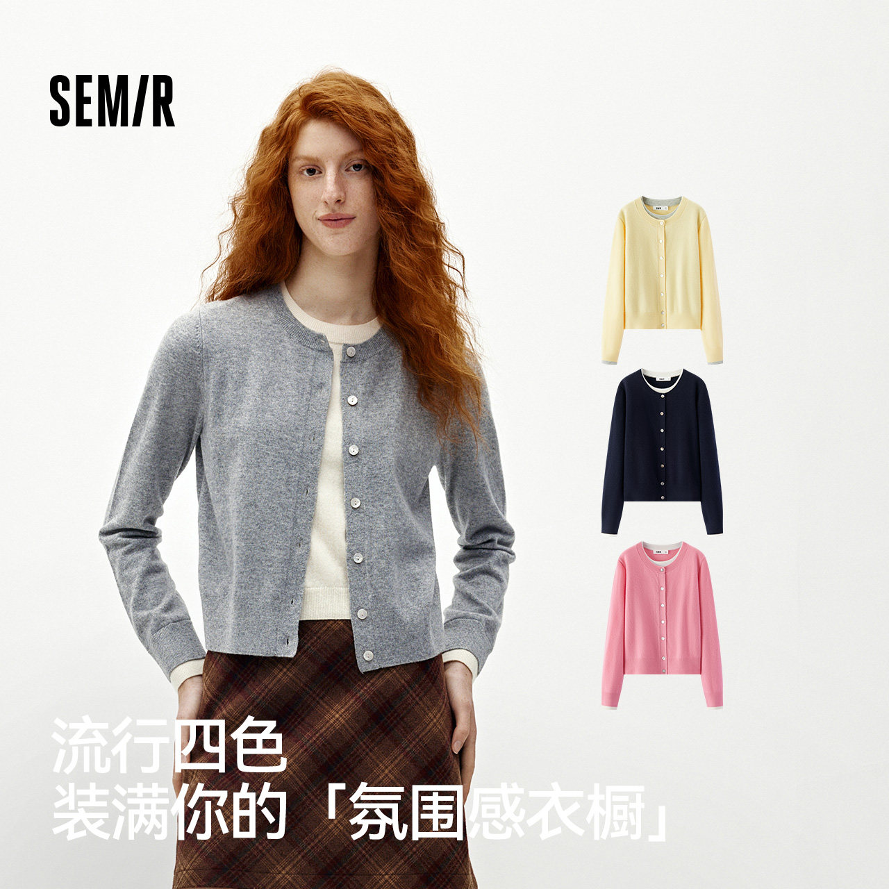 春秋薄款羊毛针织开衫女韩版圆领宽松短款羊绒衫外搭毛衣外套上衣